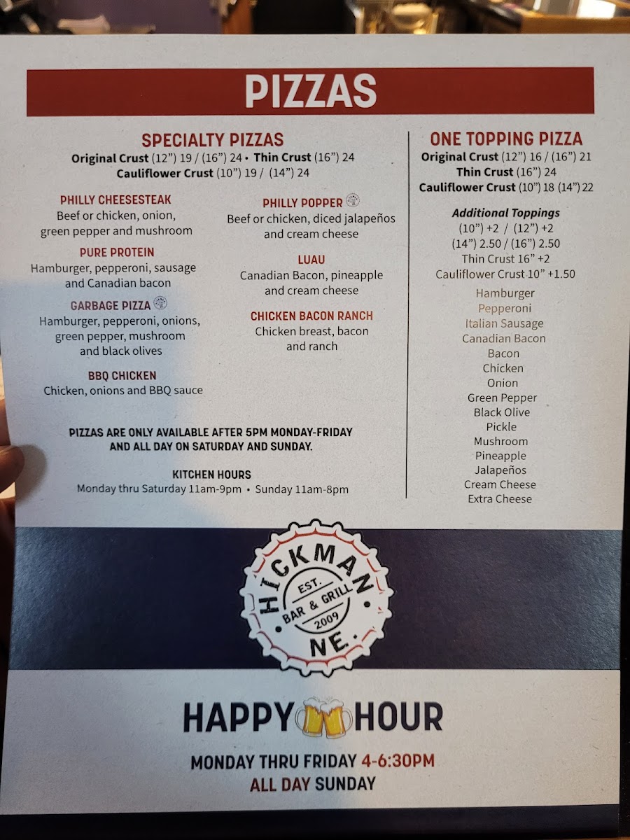 Hickman Bar & Grill Menu